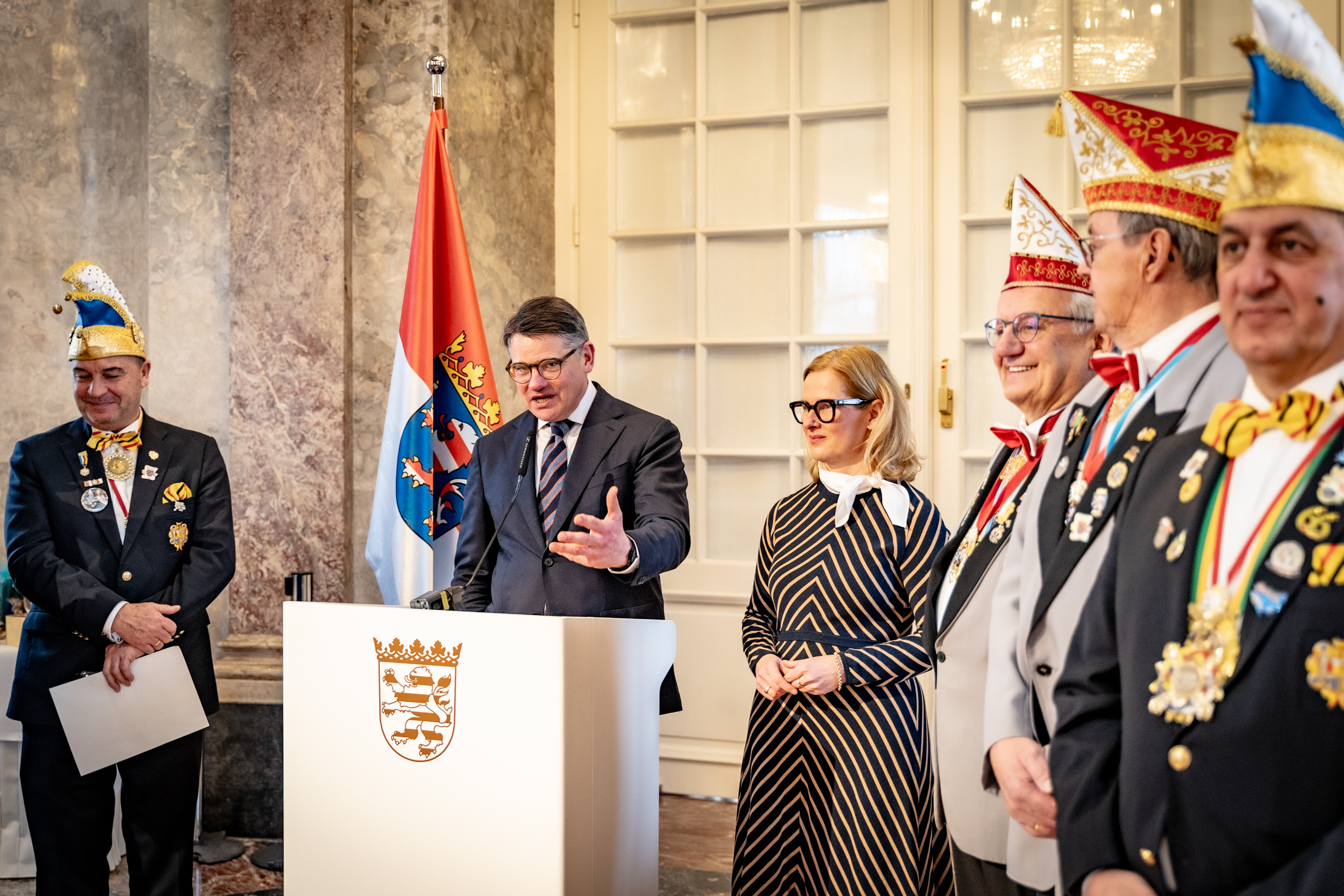 Beim Empfang der Vertreterinnen und Vertreter von mehr als 115 hessischen Vereinen am Samstag im Schloss Biebrich sagte der Regierungschef: „Die Fastnacht ist gelebtes Ehrenamt. Die Vereine pflegen mit den Sitzungen und Umzügen nicht nur regionale Traditionen, sondern bereiten damit auch unzähligen Menschen jedes Jahr eine große Freude. Hier wird jahrhundertealtes Brauchtum gepflegt und entwickelt. Die Fastnacht verbindet Menschen und zeigt zugleich, wie vielfältig die Hessinnen und Hessen sind.“ An dem Empfang nahmen 41 Kinderprinzenpaare und 74 Erwachsenenprinzenpaare sowie deren Hofstaat teil. Die angereisten Tollitäten repräsentierten Vereine der Interessengemeinschaft Mittelrheinischer Karneval sowie des Karneval-Verbands Kurhessen.