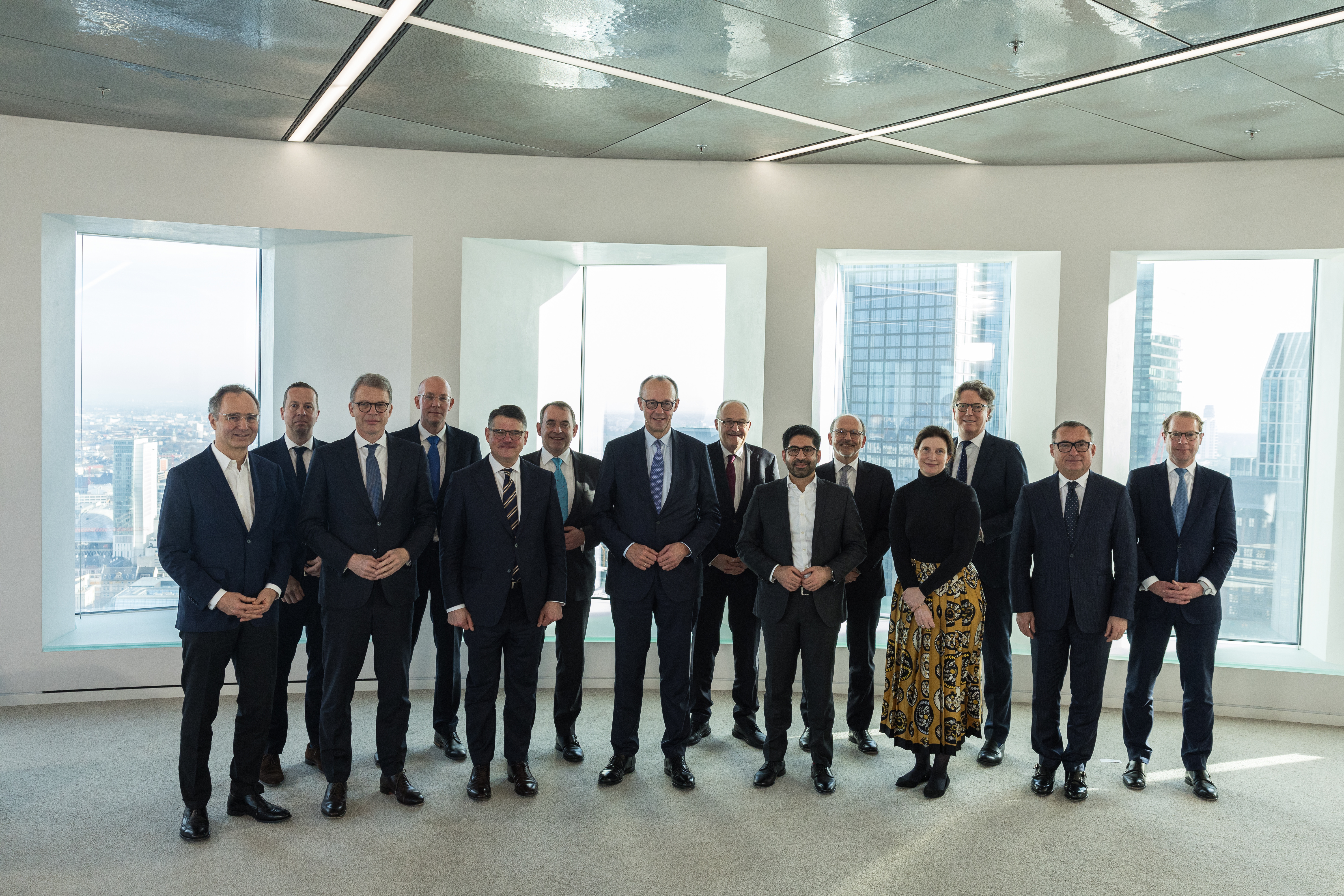 Im Anschluss an die Kabinettsitzung im Flughafen besuchten Ministerpräsident Rhein, Bundeskanzler Merz und Wirtschaftsminister Mansoori die Deutsche Bank in Frankfurt. Beim Treffen mit wichtigen Persönlichkeiten des Finanzplatzes sagte der hessische Regierungschef: „Frankfurt ist der Finanzplatz Nummer eins in der EU. Die Finanzbranche hat lange auf einen Bundeskanzler gewartet, der ihr zuhört, der sie kennt und versteht. Ich freue mich sehr, dass die neue Bundesregierung die Standortentwicklung zu einer ihrer Top-Prioritäten gemacht hat. Um das Comeback der Wirtschaft zu finanzieren, müssen wir unsere staatliche Investitionsoffensive mit privatem Kapital verbinden – und gemeinsam die größte Investitionswende in der Geschichte unseres Landes einleiten. Der Schlüssel dazu ist der Finanzplatz Frankfurt.“