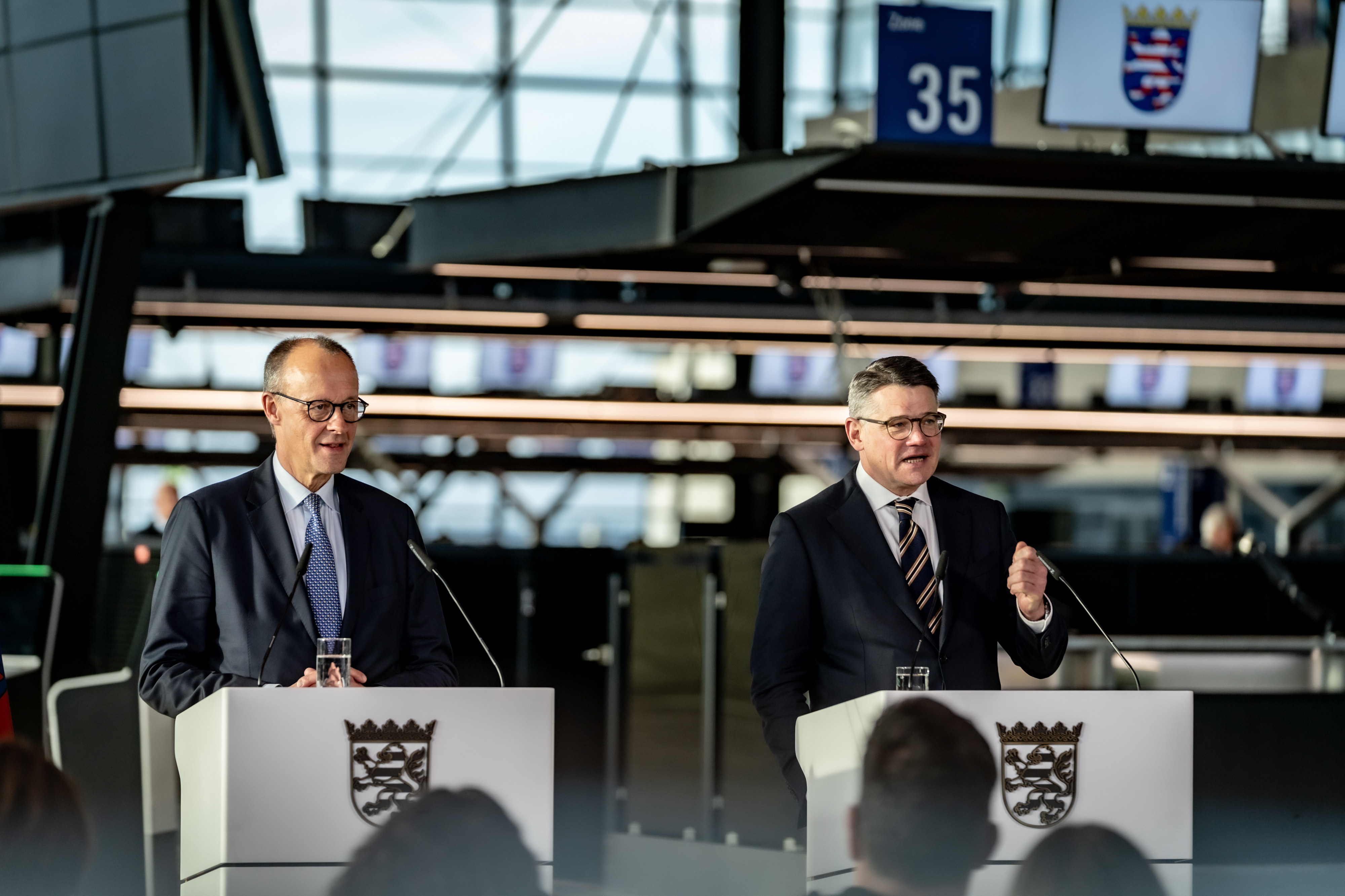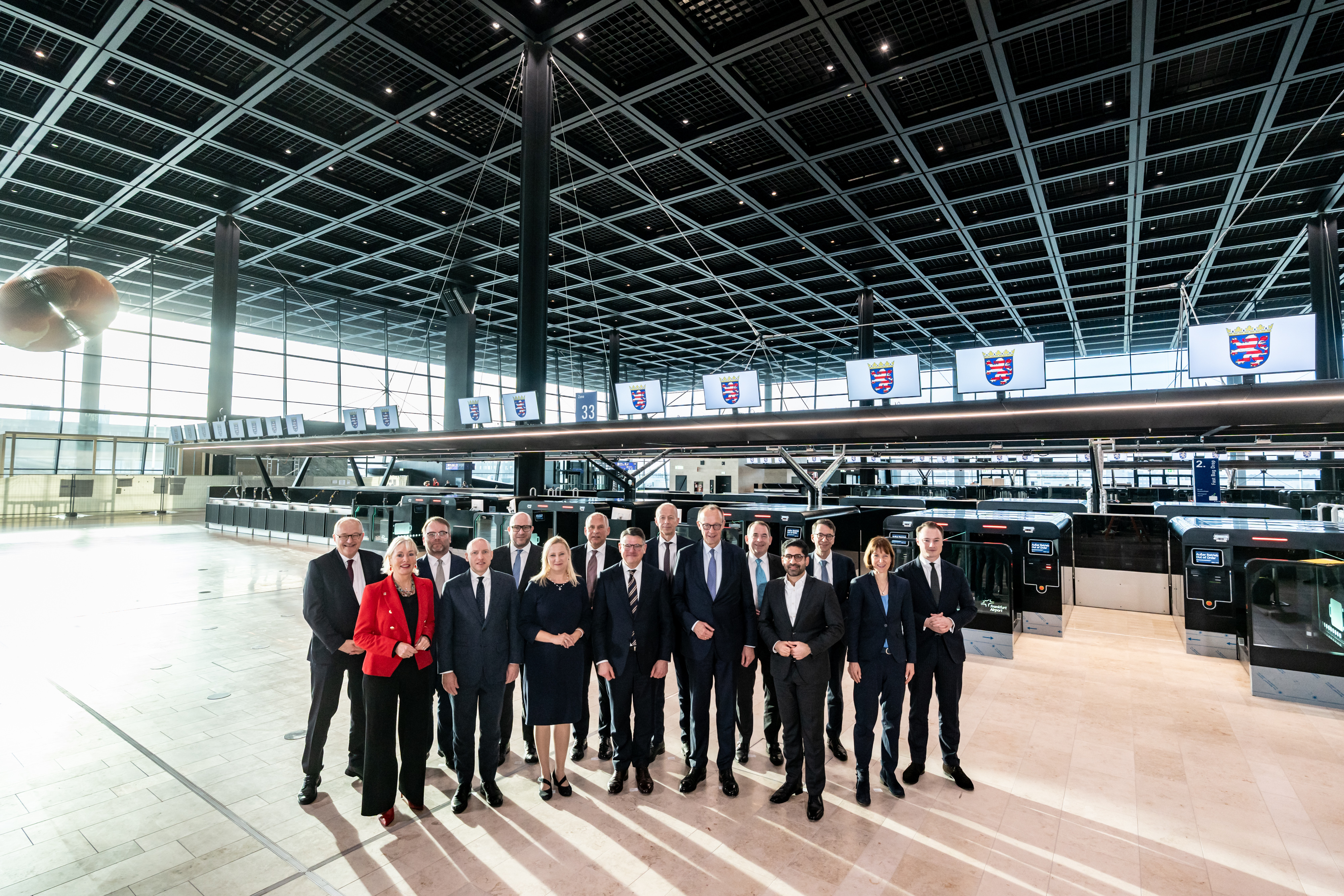 Der Termin in Hessen bildete den Abschluss der Antrittsbesuche des Bundeskanzlers in den Ländern. Nach der offiziellen Begrüßung durch Ministerpräsident Rhein auf dem Rollfeld des neuen Terminal 3 des Frankfurter Flughafens und einem Rundgang durch die neue Abflughalle nahm Bundeskanzler Merz an einer Sitzung des hessischen Kabinetts unter Leitung des Ministerpräsidenten teil. „Das neue Terminal 3 ist das größte privat finanzierte Infrastrukturprojekt in Europa“, sagte Boris Rhein. Zehn Jahre lang sei unter schwierigen Bedingungen gebaut worden, dennoch sei das Projekt im Zeitplan und im Kostenrahmen geblieben. „Das zeigt, dass wir in Deutschland anspruchsvolle Projekte wieder effizient und verlässlich stemmen können. Das Qualitätssiegel ‚Made in Germany‘ ist zurück.“ Der Frankfurter Flughafen sei ein Dreh- und Angelpunkt für die europäische Luftfahrt und ein wichtiger Wirtschaftsmotor. Rhein sagte: „Ich danke dem Bundeskanzler sehr für das Entlastungspaket, das die Bundesregierung für die Luftfahrt auf den Weg gebracht hat. Jetzt müssen schnell weitere Entlastungen folgen. 2026 muss ein Comeback-Jahr für die Luftfahrt werden.“