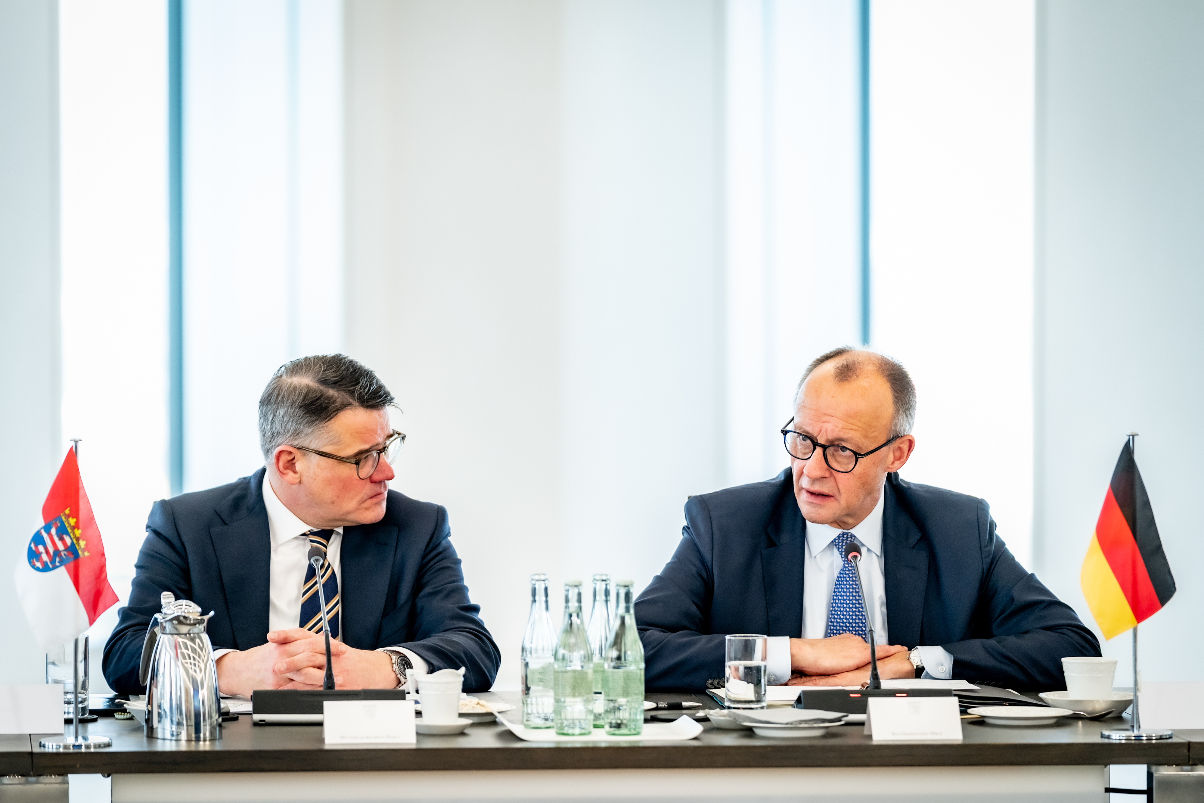 Ministerpräsident Boris Rhein empfängt Bundeskanzler Friedrich Merz
